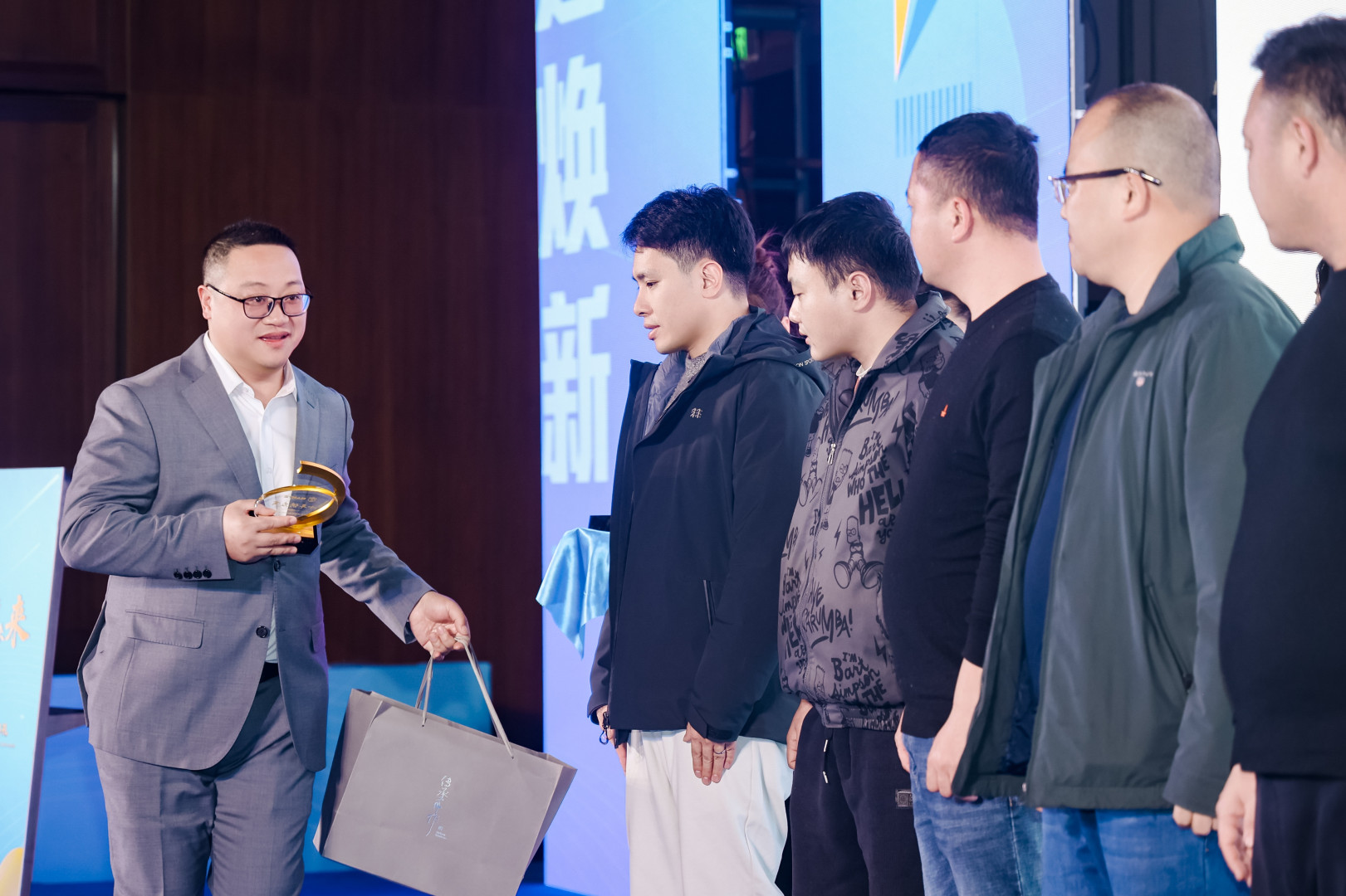 صعدت السيدة ماو كايجوان، مديرة المبيعات في شركة نانتي كرين، إلى المسرح لتقديم الهدايا التذكارية والكؤوس التذكارية لمقدمي الخدمات الذين عملوا مع الشركة لأكثر من عشر سنوات، وشكرتهم على مساهماتهم المتميزة في الخدمات الفنية والتعاون التسويقي.